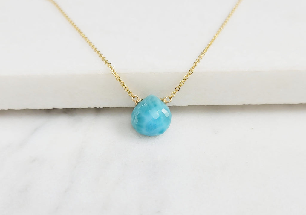 pendant might feature a small, single Larimar cabochon or a petite, intricately